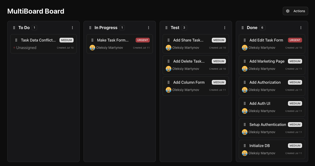 - Drag-and-Drop - Reorder tasks and columns with smooth animations